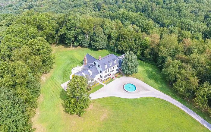 Truly unique and at the same time classic colonial situated on over 19 private acres in NASD. Amazing features incl. Schonbek crystal chandeliers, custom hand carved woodwork, beautiful granite & hardwood floors, 1st floor master suite, huge gourmet Rutt kitchen, 5 fireplaces (3 woodburning), potential for extended stay/nanny/mother-in-law suite in huge finished lower level. Entertain on grand or intimate scale. Formal living & dining rooms flank grand foyer. Cherry builtins, woodwork & floors adorn handsome den. Enormous remodeled (2000) chef's kitchen has 6 prep/serving areas, granite counters, prof. grade appliances, multiple pantries plus breakfast area. Opens to spacious family room w/vaulted cherry beamed ceiling, all w/gorgeous views/access to wooded back yard. Separate wing is home to private 1st flr master suite w/spa quality bath incl. steam shower & huge walkin closet. LL has it all - game & billiards rooms, full kitchen, exercise/bedroom plus 2 full baths & sauna. Convenient location!
